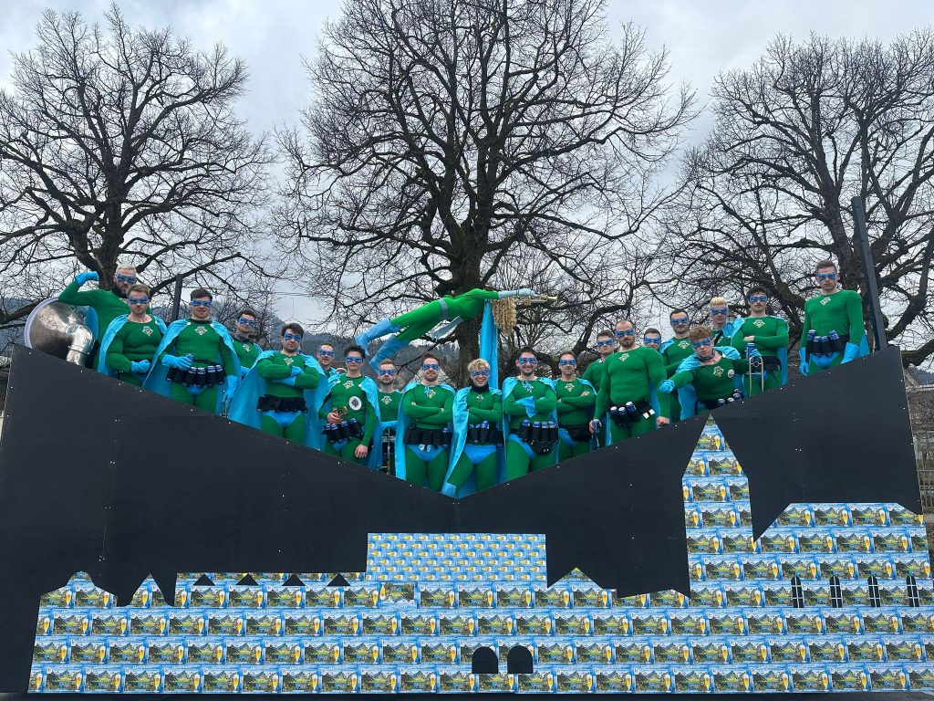 2025 – «Quöllman» Dieses Jahr haben wir uns in die Welt der Superhelden begeben – und wer könnte besser zu uns passen als unser ganz eigener „Quöllman“? Ein Held, der seine übermenschlichen Kräfte natürlich aus dem legendären Quöllfrisch Bier schöpft. Mit muskelbepackten Kostümen, Umhängen und jeder Menge guter Laune haben wir die engen Gassen von Appenzell (un)sicher gemacht. Trotz unserer beeindruckenden Muskelberge mussten wir feststellen: Superkräfte schützen leider nicht vor eisigen Temperaturen! Doch echte Helden lassen sich nicht unterkriegen – und so haben wir gemeinsam eine weitere Fasnacht gefeiert.